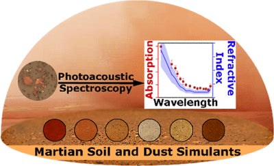 Understanding the Martian climate requires a detailed characterization of the optical properties of Martian dust as it is a ubiquitous component of the atmosphere. The continued improvement of Martian atmosphere observations motivates measurements of terrestrial simulants under controlled conditions to support field studies and computational modeling. This investigation demonstrates an in situ method to entrain and directly measure the absorption spectrum of six Martian dust simulants using photoacoustic spectroscopy.